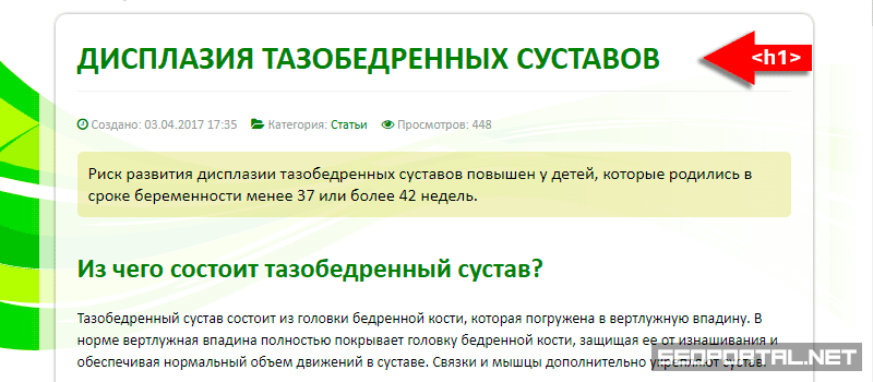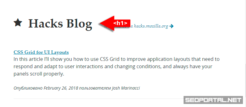 Текст, размещенный в теге <h1> имеет высокий приоритет для поисковых систем при оценке релевантности.