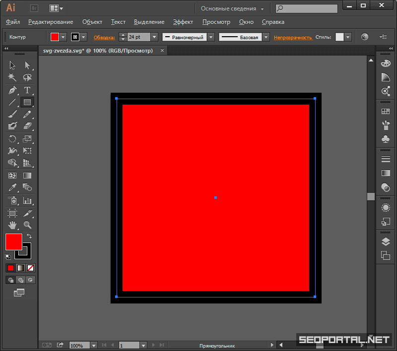 Чтобы нарисовать красный квадрат с черной обводкой достаточно создать простой текстовый файл, заменить его расширение с .txt на .svg и вставить в него следующий код: