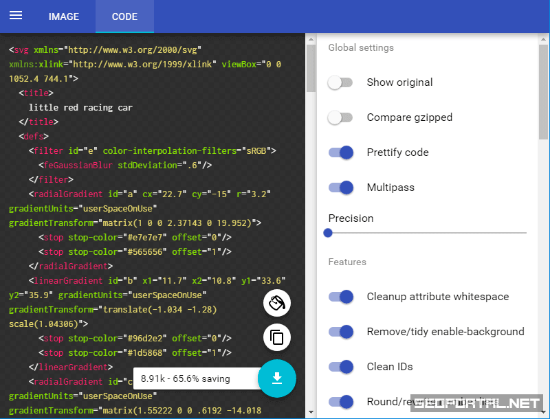 Все эти действия можно проделать вручную в текстовом редакторе, но для этого необходимо знание языка разметки SVG. Намного более простым и эффективным вариантом является использование оптимизатора SVGO:
