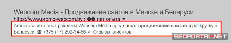 <meta name="description" content="Агентство интернет-рекламы Webcom Media предлагает продвижение сайтов и раскрутку в Беларуси. ☎ +375 (17) 292-34-56 ➢ Отзывы клиентов." />