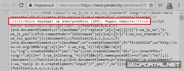 Заголовок страницы — это текст, определяемый в HTML тегом <TITLE>. С его помощью вебмастер дает понять поисковой системе, что содержится на странице. Текст, который обрамляется тегами <title> </title>, отображается браузером в заголовке окна. Кроме того, этот текст будет содержать и ссылку на ваш сайт на странице результатов поиска Яндекса, то есть это, в некотором роде, визитная карточка вашего ресурса.