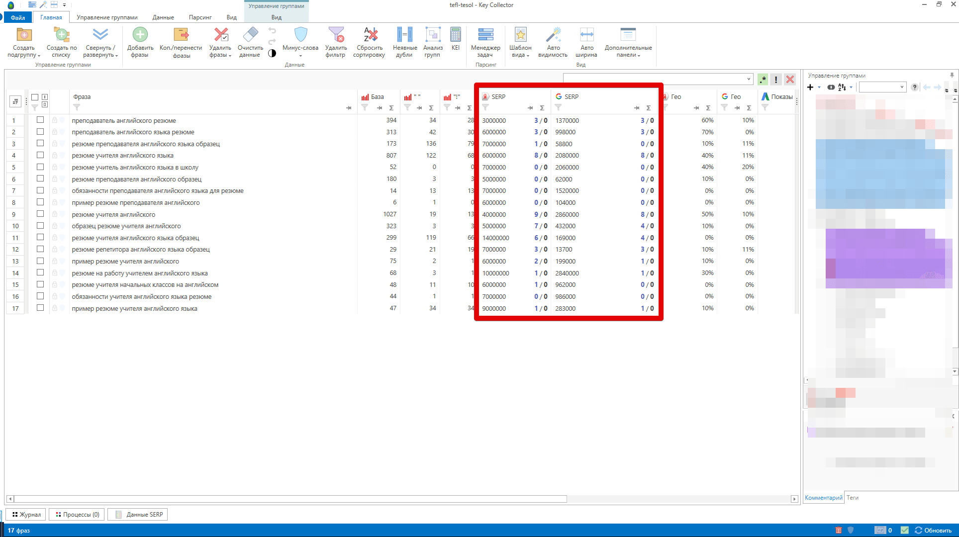 Автоматизировать процесс определения данных из SERP можно в программе Key Collector, после чего эти данные можно задействовать в формулах KEI.