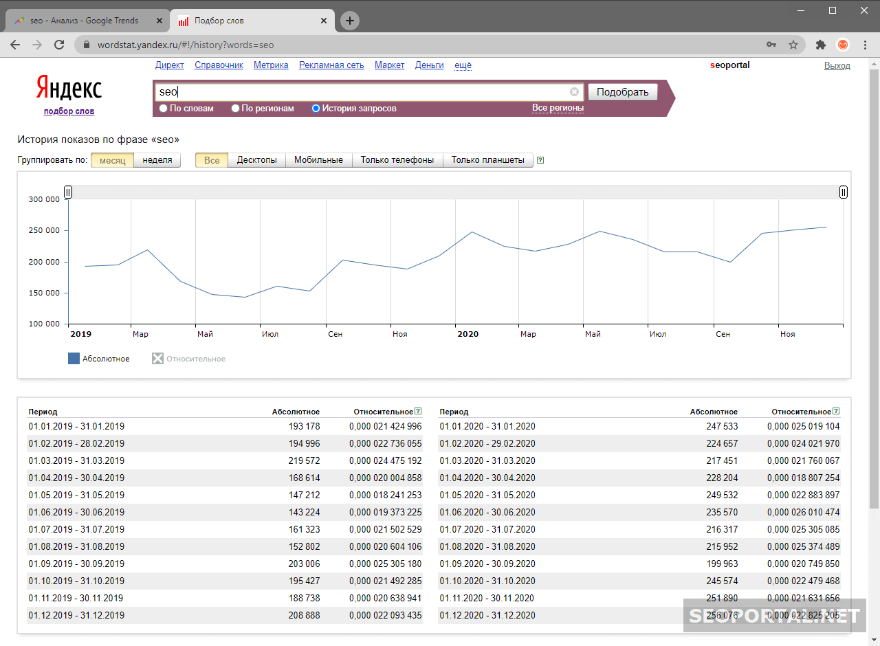 Популярность поискового запроса в Яндекс и Google может существенно отличаться.