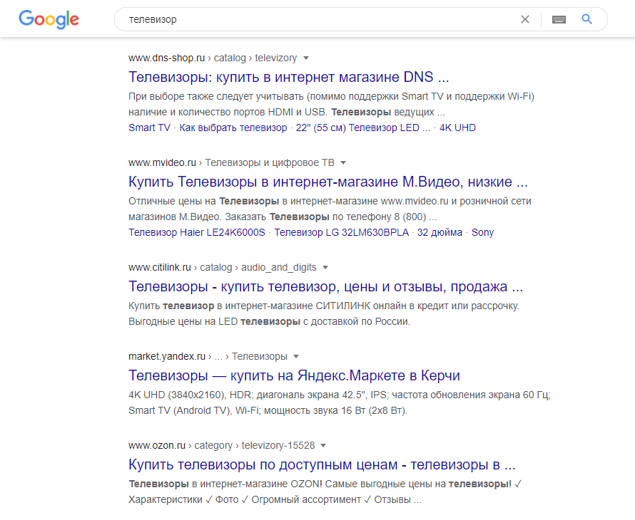 Примеры: «купить смартфон», «заказать пиццу». По таким фразам в результатах поиска будут фигурировать релевантные сайты ближайших к пользователю компаний. - Геонезависимые