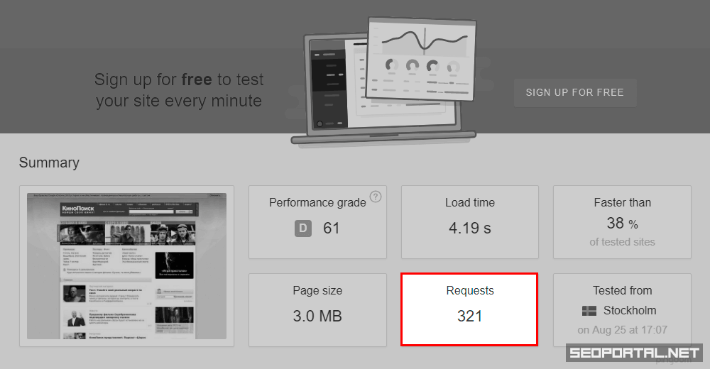 Самым простым способом узнать общее количество запросов страницы сайта к серверу является сервис Pingdom Website Speed Test: число ресурсов после анализа страницы будет определено параметром «Requests».