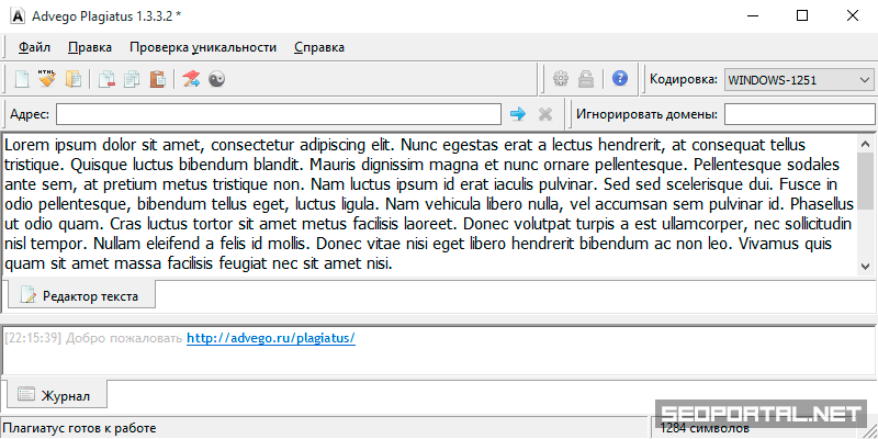 Advego Plagiatus — ещё одна десктопная программа для проверки уникальности текста, во многом уступающая предыдущей.