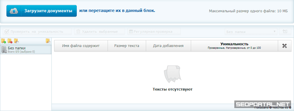 Сервис TEXT.RU позволяет проверить текст в текстовой области на уникальность бесплатно и без регистрации.