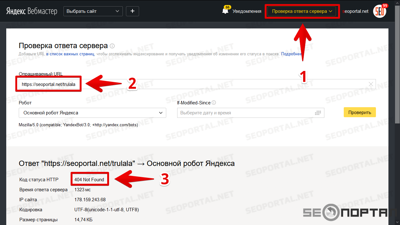 Проверка ответа сервера в Яндекс.Вебмастере